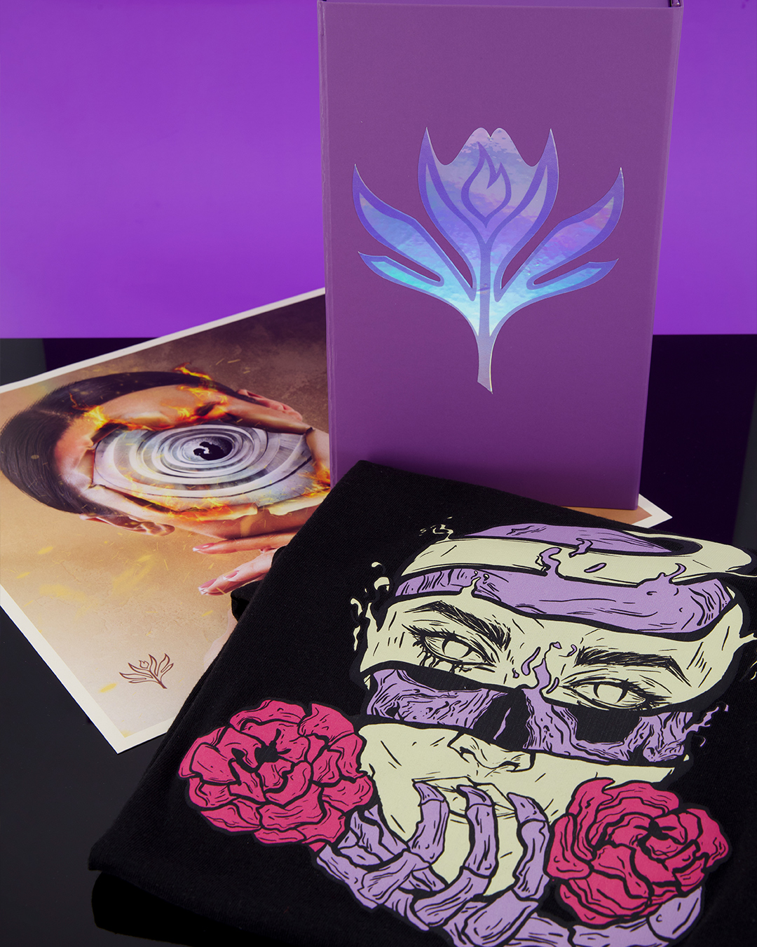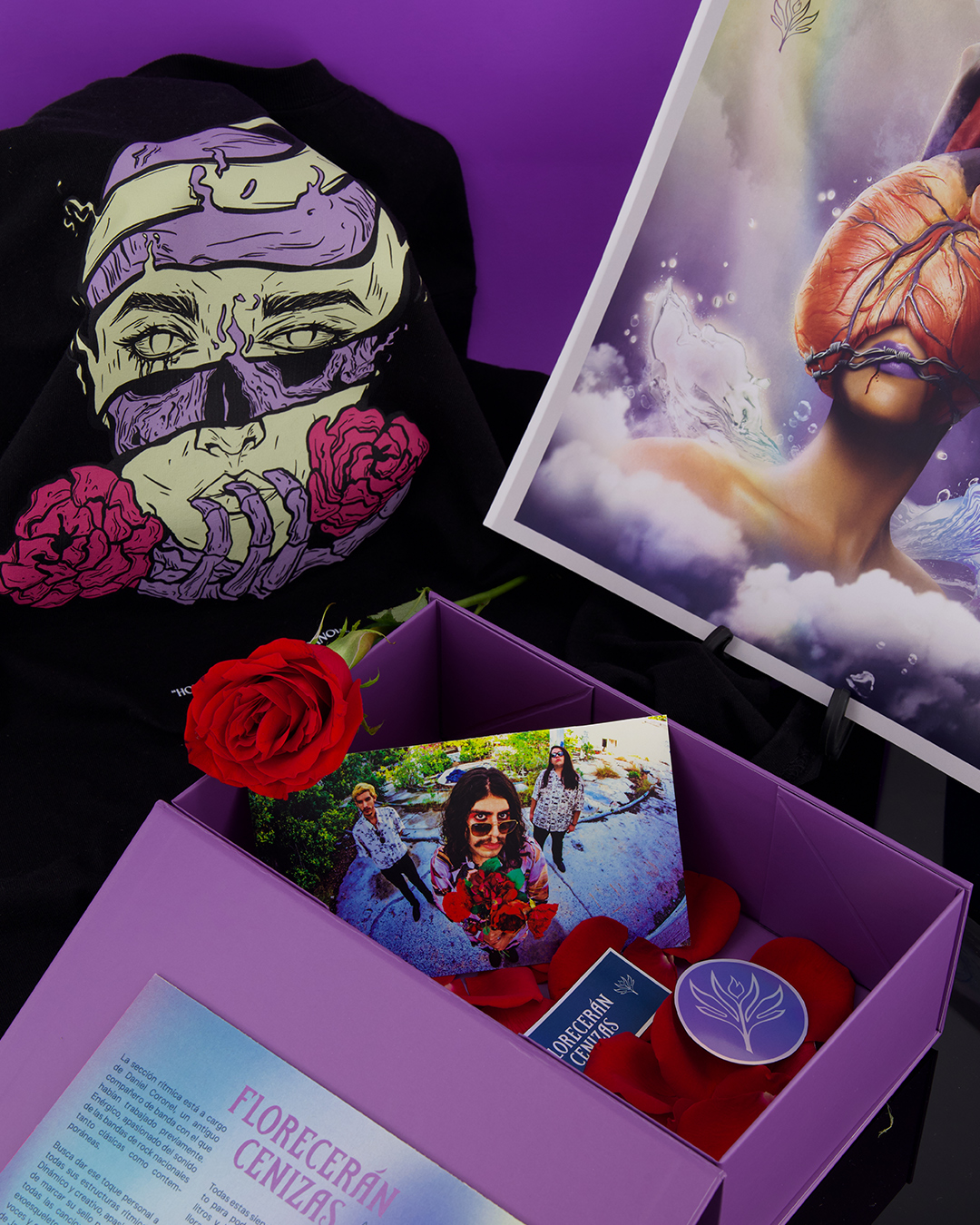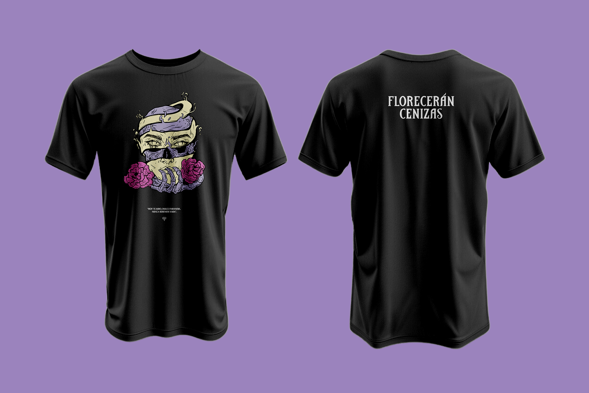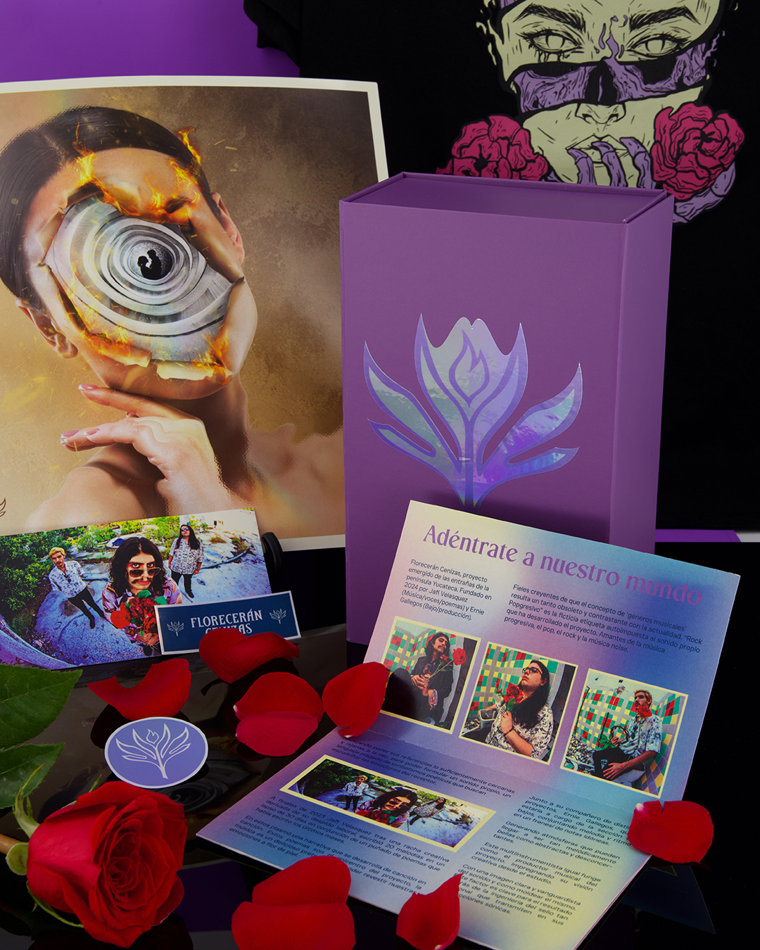 Desde lo visual, el concepto de Florecerán Cenizas refleja fielmente su identidad filosófica. Formas orgánicas, contrastes marcados y una estética que fusiona el estilo psicodélico clásico con influencias contemporáneas dan lugar a una identidad visual atemporal e impactante. El logotipo y los elementos gráficos encapsulan la potencia de su sonido, al tiempo que transmiten una sutil delicadeza, evidenciando su versatilidad y constante capacidad de reinvención.