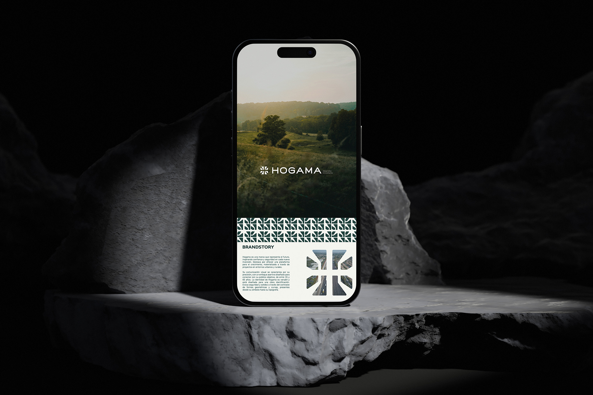 Su identidad visual se distingue por la precisión y coherencia en su lenguaje gráfico, con un enfoque asertivo diseñado para conectar con un público objetivo de entre 35 y 65 años. La versatilidad de Hogama garantiza una identificación clara y efectiva, evocando solidez y estabilidad mediante un equilibrio calculado entre formas geométricas y curvas. Desde su símbolo hasta su tipografía, cada elemento visual refuerza su carácter estructurado, corporativo y contemporáneo.
