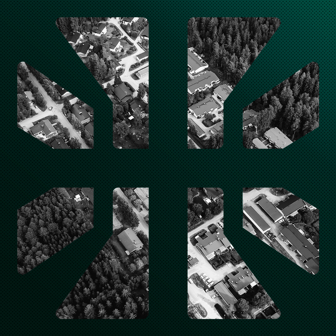 El símbolo es una representación visual cenital de la planeación urbana de un fraccionamiento (calles y zonas urbanas)